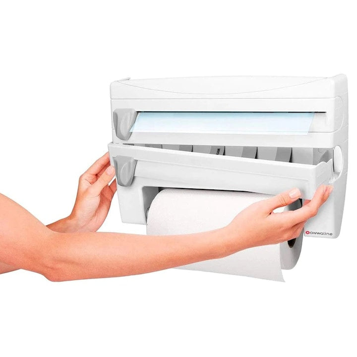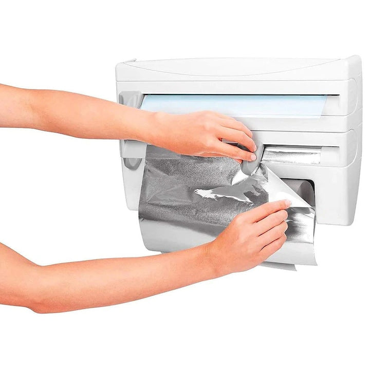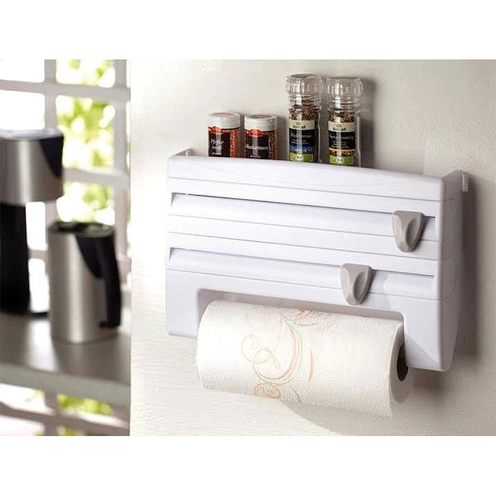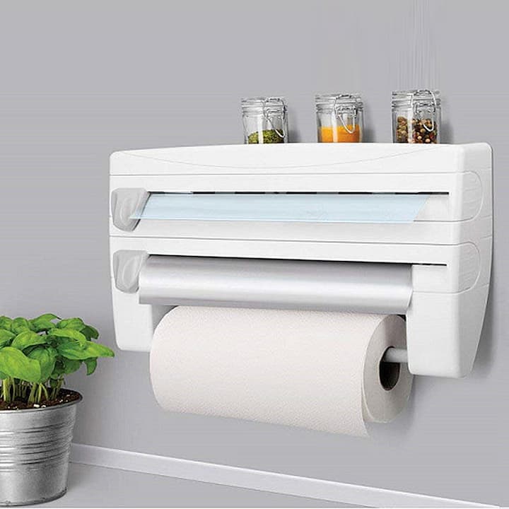 Dispenser de bucatarie 4 in 1 pentru folie alimentara, rola de hartie, folie de aluminiu