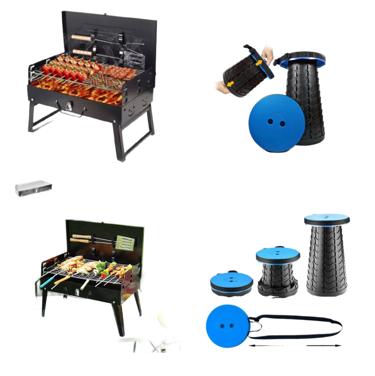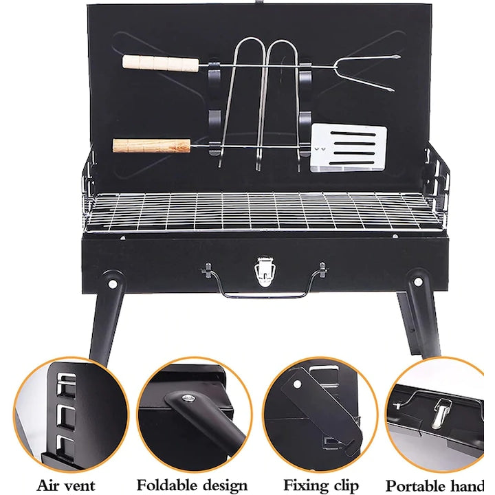 Pachet Outdoor: Grătar Portabil Tip Servietă + Scaun Telescopic – Compact și Ușor de Transportat