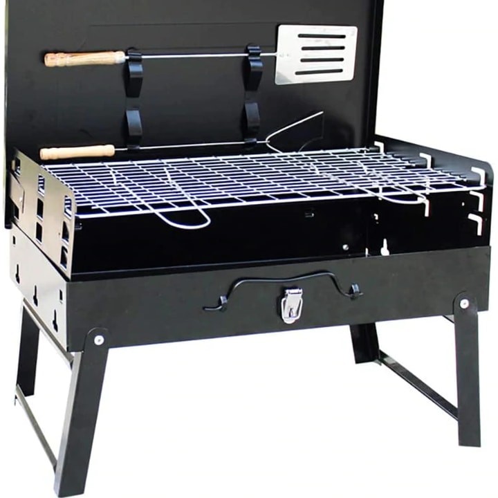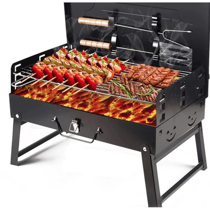 Transformă fiecare ieșire în natură într-o experiență completă cu acest pachet outdoor. Grătarul portabil, cu dimensiuni de 44 x 27 x 22 cm, este realizat din metal rezistent și dispune de picioare pliabile, facilitând transportul și depozitarea. Setul include grătarul și accesorii pentru gătit, fiind perfect pentru camping, picnicuri sau grădinărit.