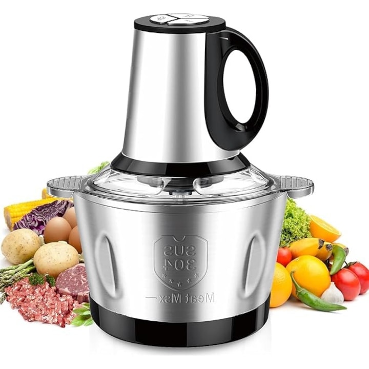 Tocător Electric Multifuncțional din Inox – Motor Puternic, 4 Lame, Capacitate Mare, 2 Viteze, pentru Piureuri, Legume, Fructe, Carne, Condimente